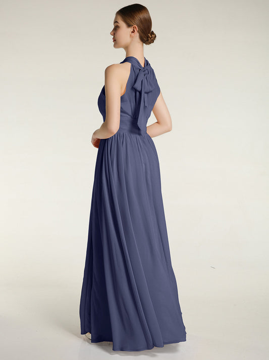 Babaroni ReneeVestido sexy maxi de chiffon con cuello halter y espalda baja Tormenta