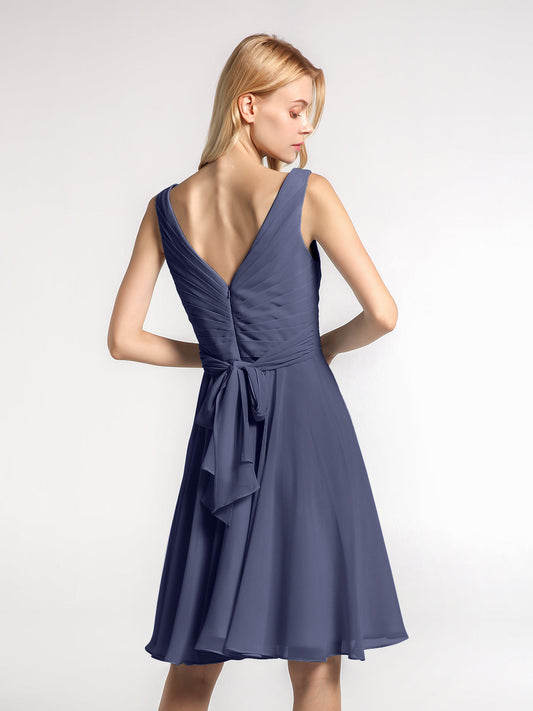 Vestido de chiffon con escote en V y tiras traseras decorativas Tormenta