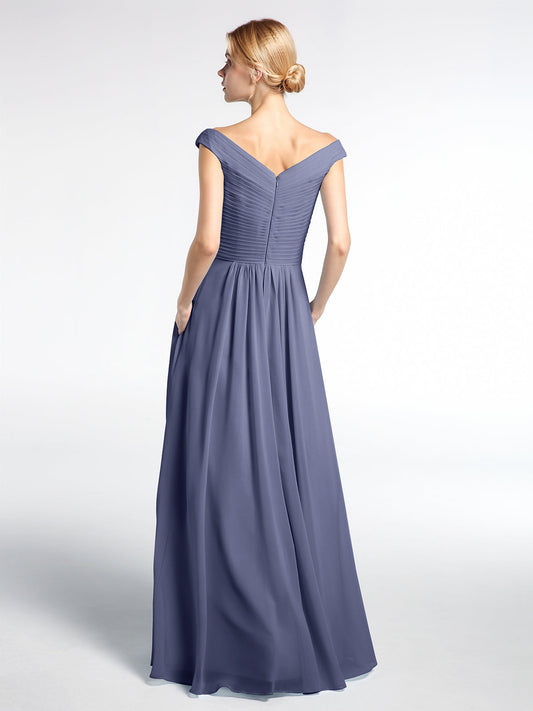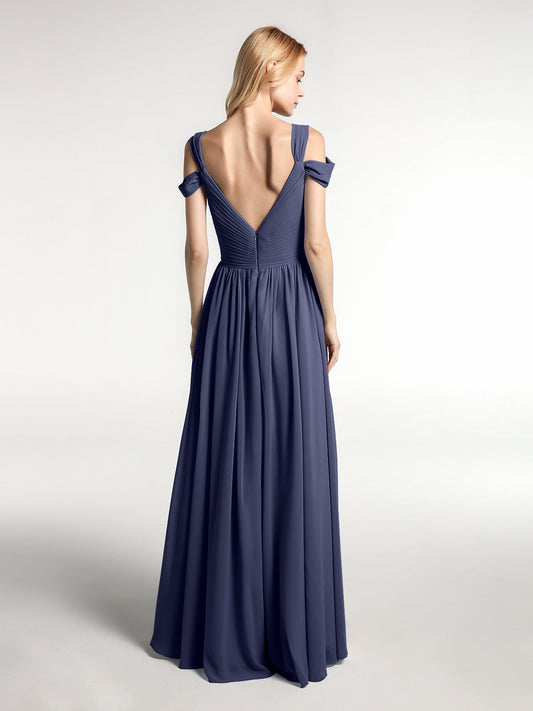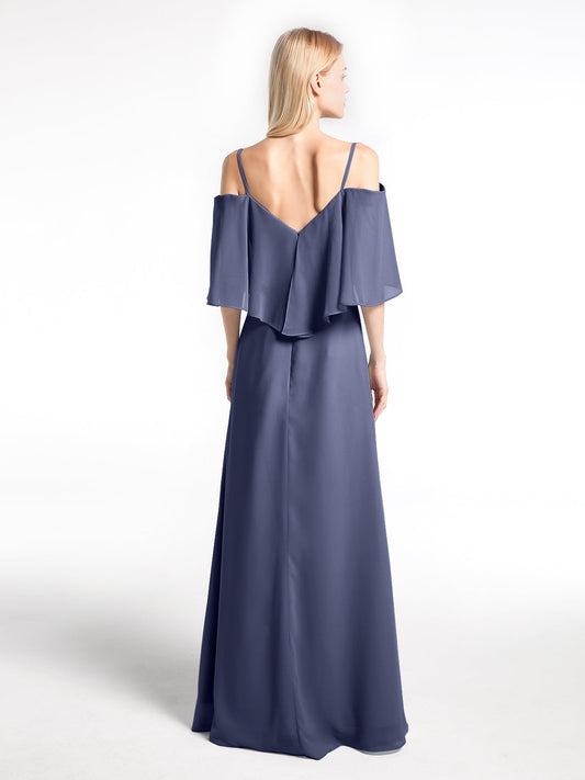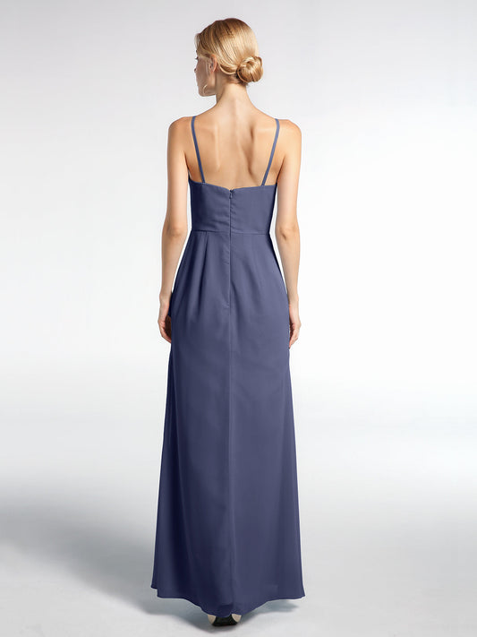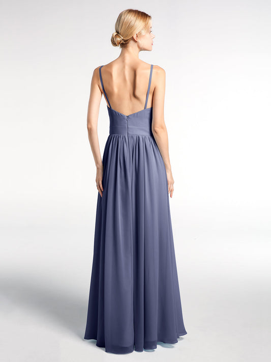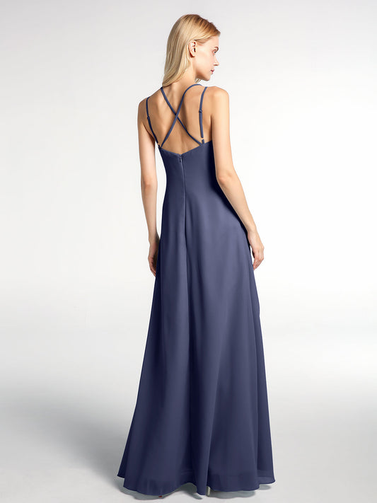 Babaroni NatalieVestido maxi simple de chiffon con escote en V y tirantes finos Tormenta