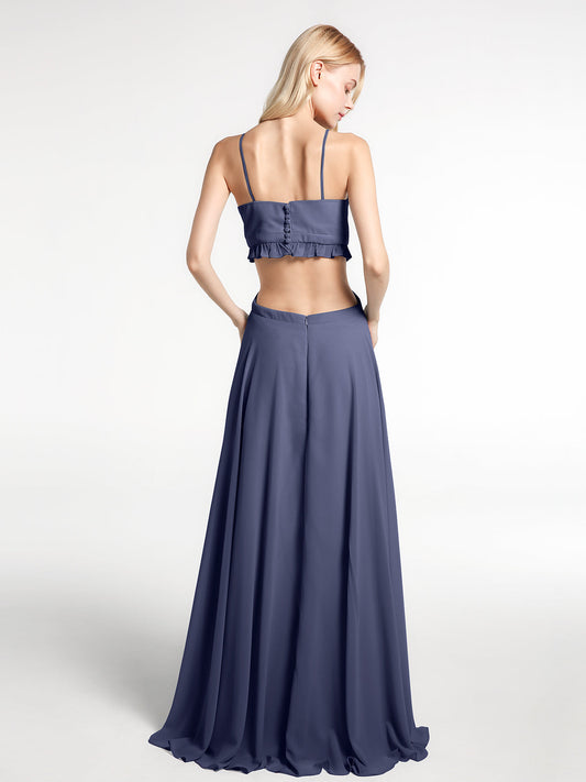 Babaroni EudoraVestido sexy maxi de chiffon con tirantes finos y detalles de volantes recortados Tormenta