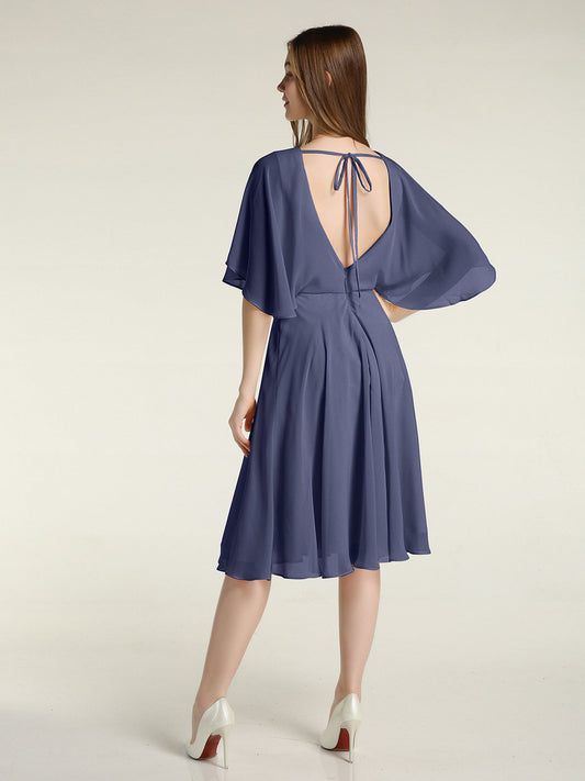Babaroni SelenaVestidos cortos de chiffon con escote tipo scoop y mangas de volantes Tormenta