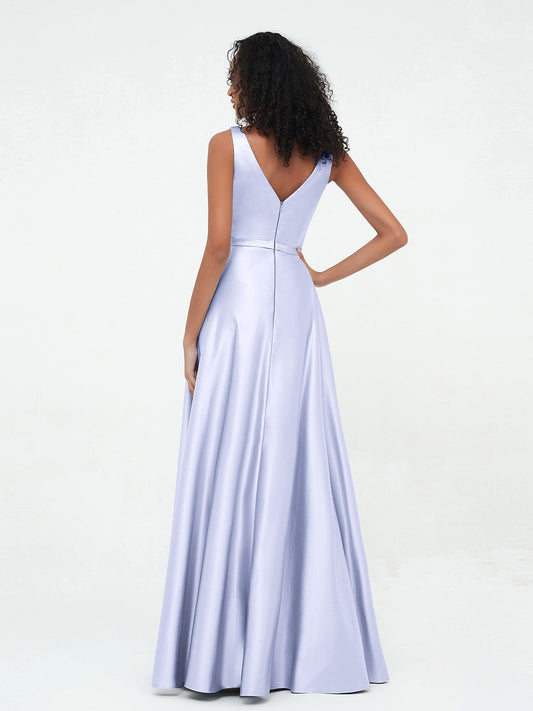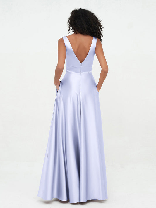 Babaroni SadeVestidos máximos de satén estilo princesa con escote en V y bolsillos Lavanda