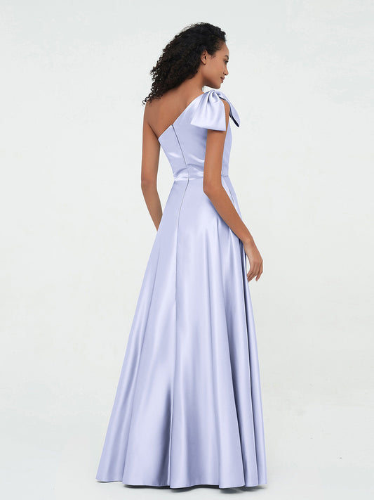 Babaroni PrimroseVestidos largos de satén de un hombro con bolsillos Lavanda