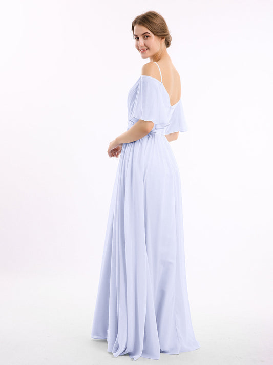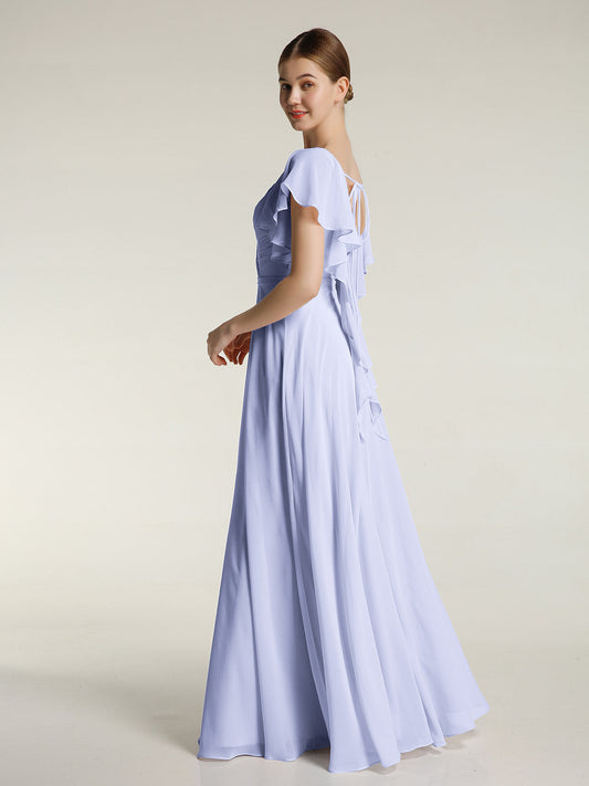 Babaroni RosaVestidos largos de dama de honor de chiffon con escote en Y y mangas de volantes Lavanda