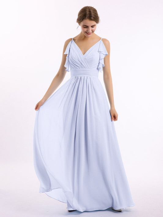 Babaroni VickyVestidos de dama de honor de chiffon con escote en V y tirantes finos Lavanda