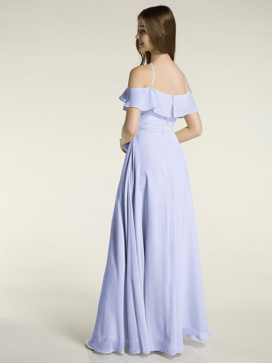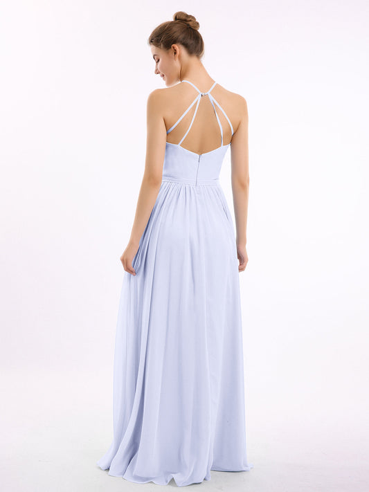 Babaroni LesleyVestidos largos de chiffon estilo halter con doble tirante Lavanda