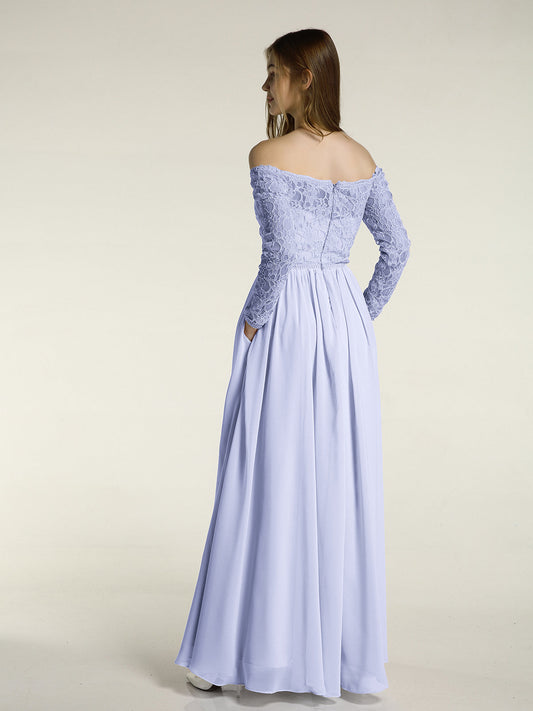 Babaroni MeilaniVestidos de encaje y chiffon con mangas largas y bolsillos Lavanda