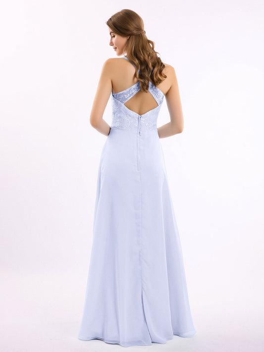 Babaroni LucilleVestidos largos de chiffon con encaje en escote en V profundo y espalda descubierta Lavanda