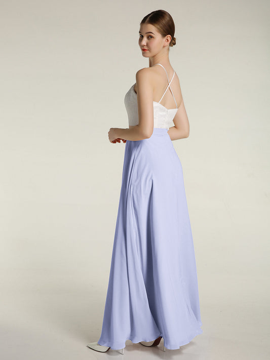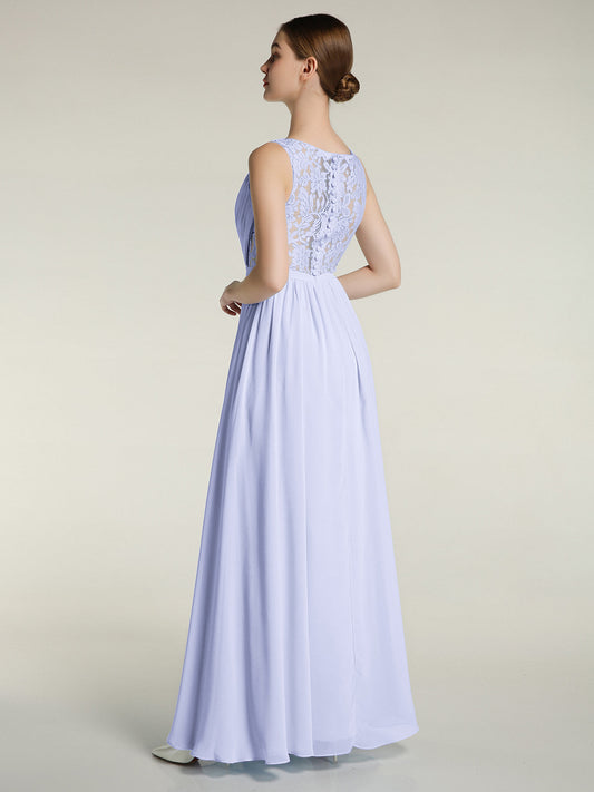 Babaroni MariaVestidos largos de chiffon de cuello en Y para damas de honor Lavanda