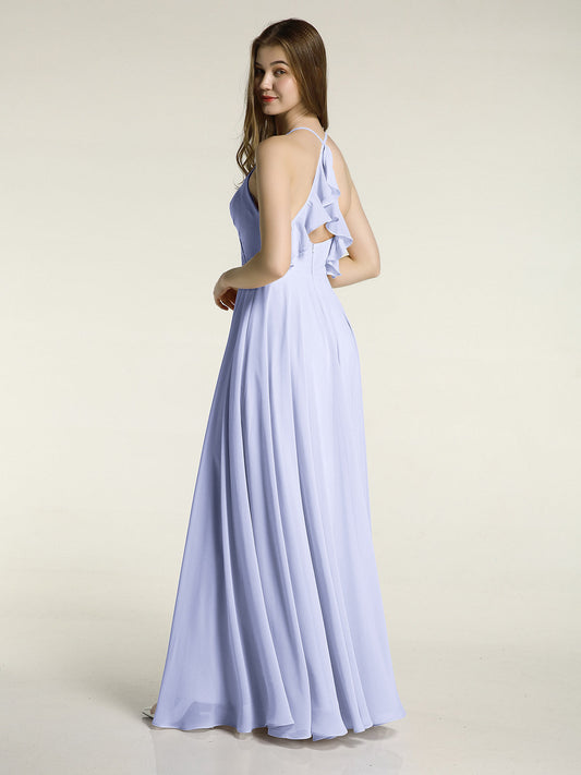 Babaroni MiriamVestidos largos de dama de honor estilo halter de chiffon Lavanda