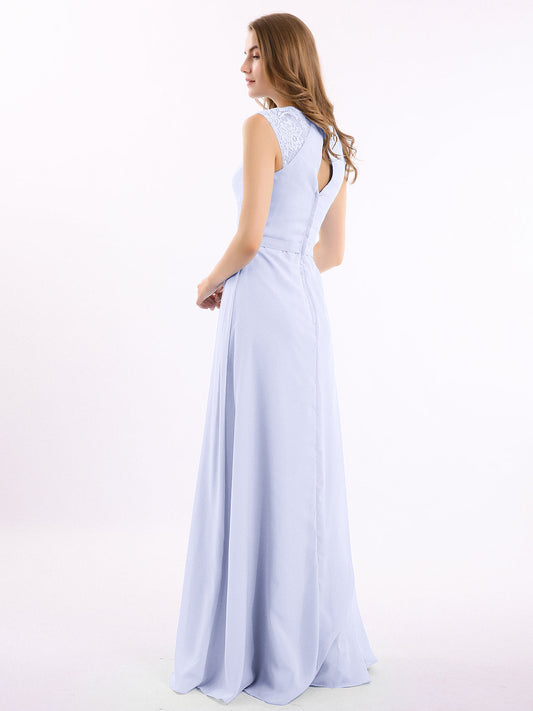 Babaroni LaurenVestidos largos de chiffon estilo princesa con abertura Lavanda