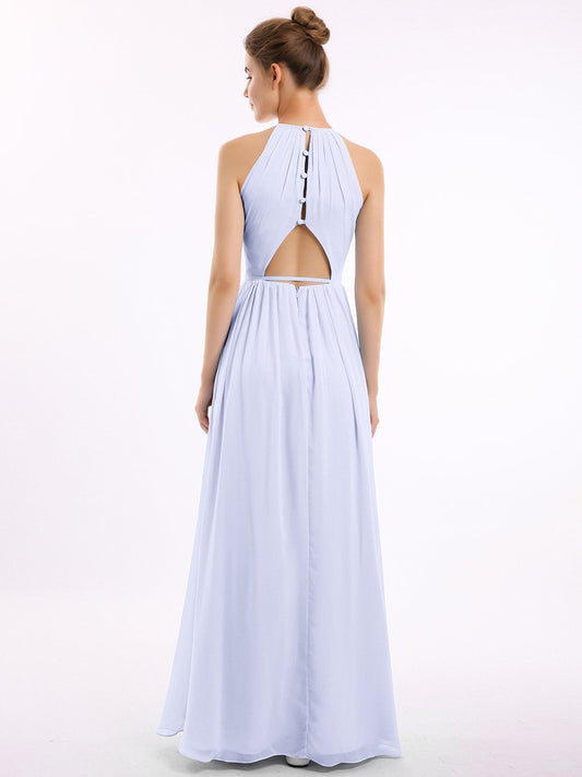 Babaroni CynthiaVestidos largos de chiffon estilo halter con espalda descubierta Lavanda