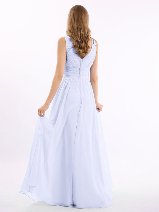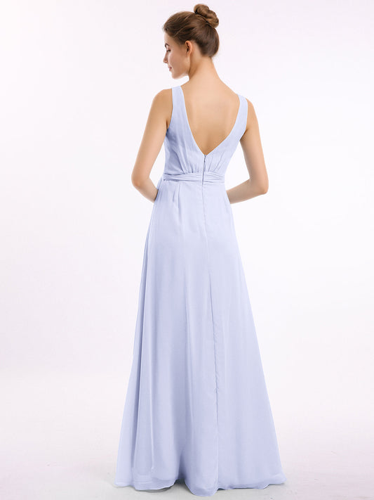 Babaroni GailVestidos largos de chiffon con escote en V hasta el suelo Lavanda