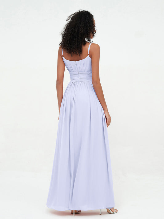 Babaroni LeeVestidos de dama de honor de chiffon con tirantes spaghetti y escote en V Lavanda