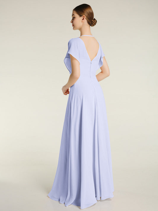 Babaroni AprilVestido sencillo de chiffon estilo halter con abertura Lavanda