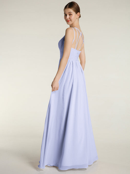Babaroni FeliciaVestidos largos de chiffon con tirantes finos y escote en corazón Lavanda