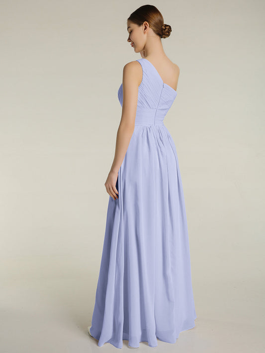 Babaroni MildredVestidos largos de chiffon de un hombro con bolsillos Lavanda