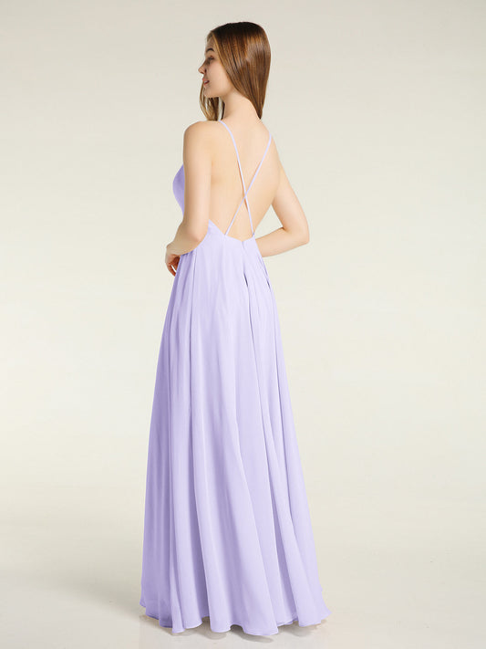 Babaroni EllaVestido sencillo de chiffon con tirantes finos y escote en forma de muesca Lila