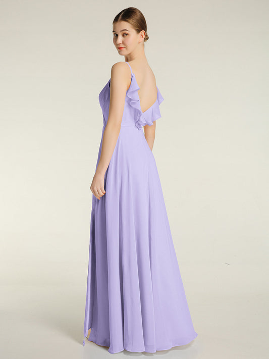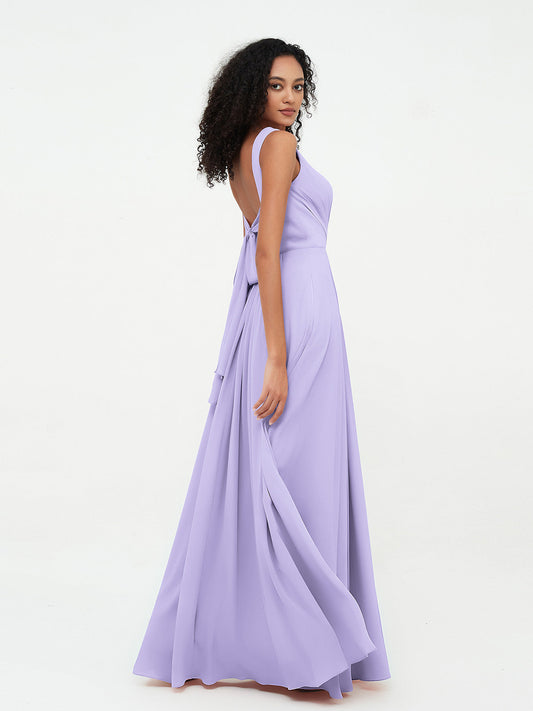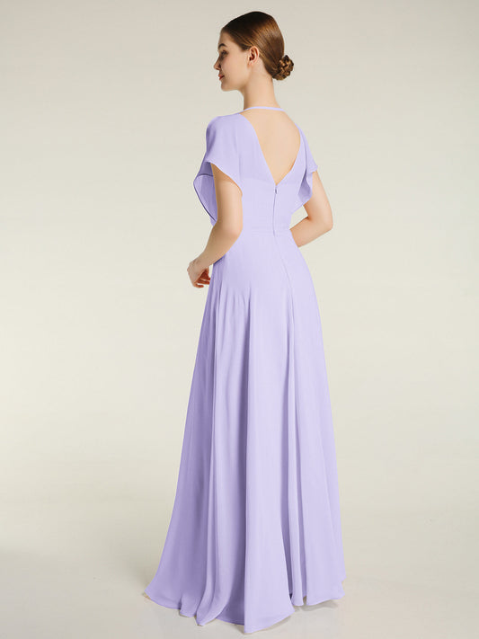 Babaroni VitaVestido de dama de honor de chiffon con escote en V y espalda descubierta Lila