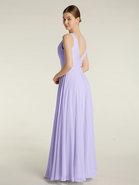 Babaroni CarolVestidos sencillos de chiffon con escote en V Lila
