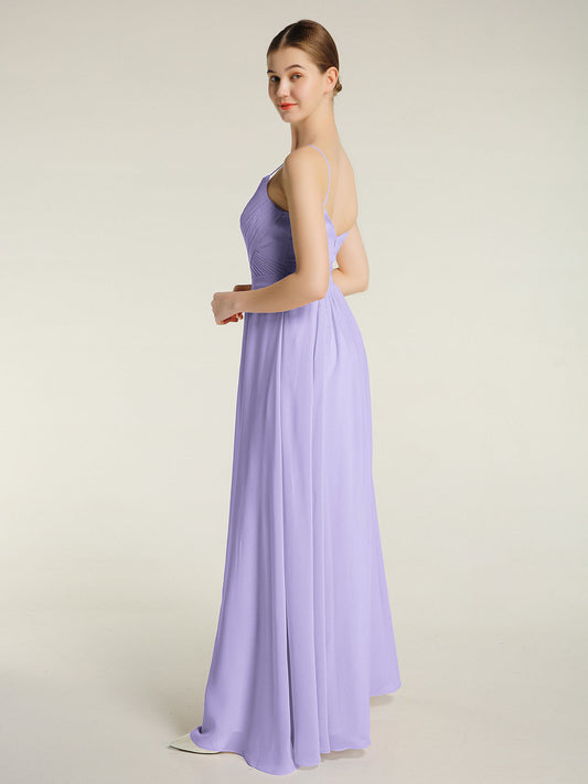 Babaroni FeliciaVestidos largos de chiffon con tirantes finos y escote en corazón Lila