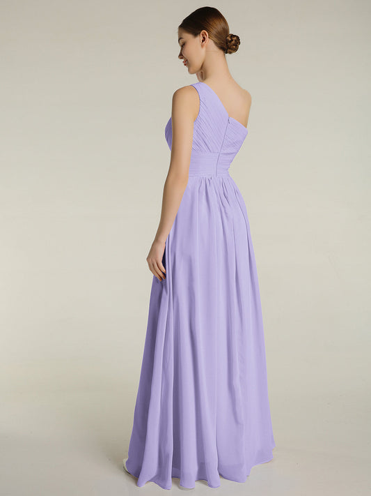 Babaroni MildredVestidos largos de chiffon de un hombro con bolsillos Lila