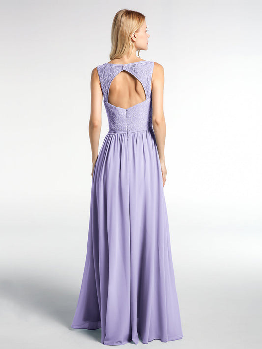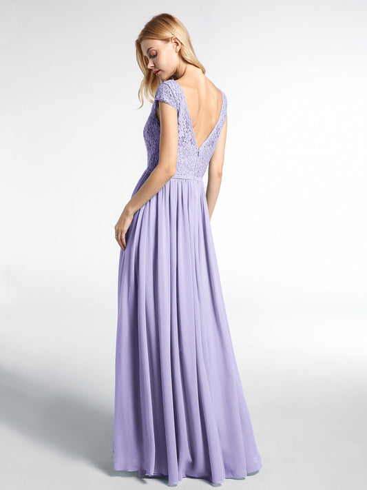 Babaroni LaraineVestido maxi con cuerpo de encaje y falda de chiffon con escote en V Lila