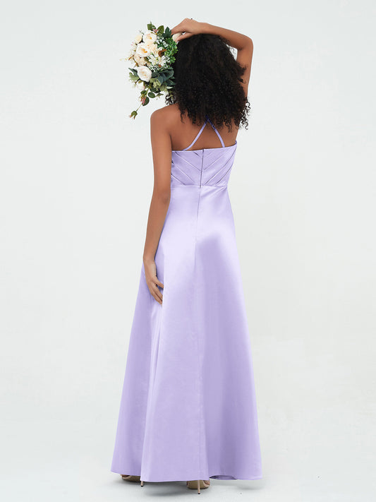Babaroni TrudaVestidos máximos de satén estilo A-line con cuello halter y bolsillos Lila