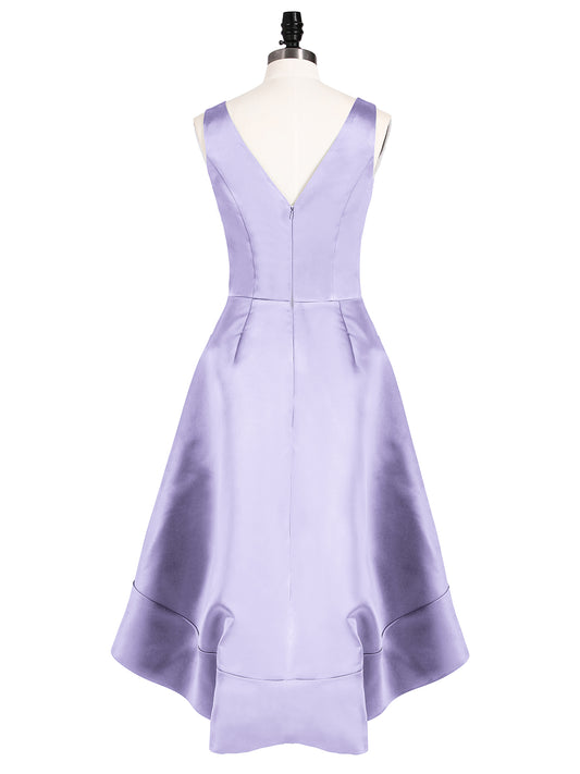 Babaroni HannahHannah Escote En V Saten Alto Bajo Vestidos De Dama De Honor Lilac