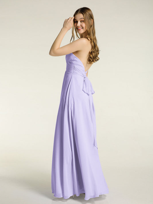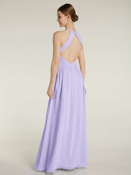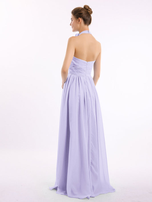 Babaroni MandyVestidos largos de chiffon estilo halter para damas de honor Lila