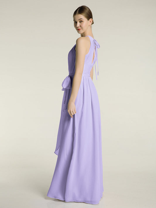 Babaroni JaneVestidos largos de chiffon estilo halter con lazo Lila