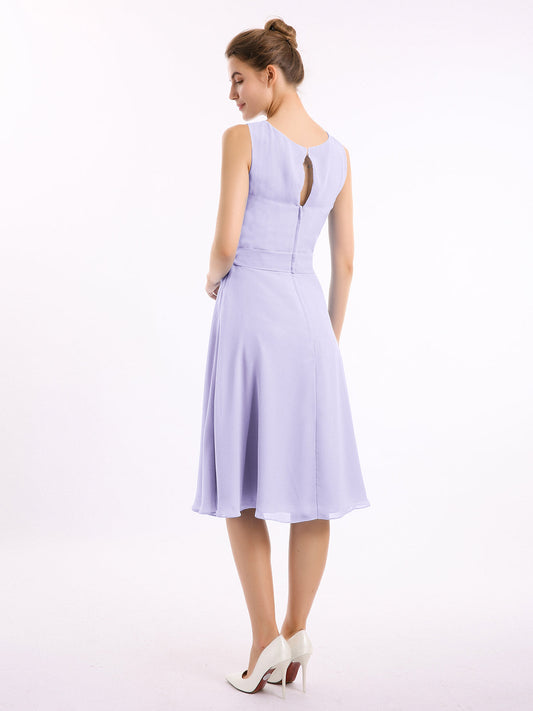 Vestido corto de chiffon con cuello tipo scoop y lazo de cinturón Lila