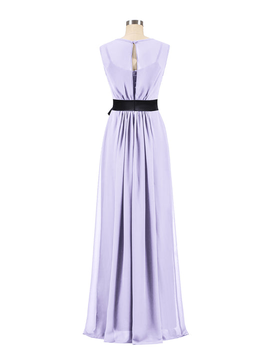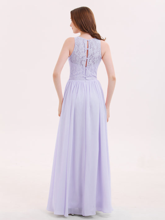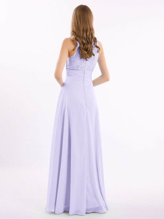 Vestidos largos de chiffon con encaje en escote en V profundo y espalda descubierta Lila