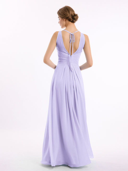 Babaroni HedyVestido largo de chiffon con escote en forma de V y cintura imperio Lila