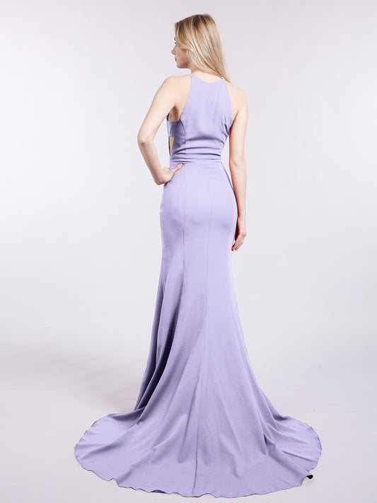 Babaroni EsmeVestidos largos de terciopelo estilo sirena con cuello barco Lila