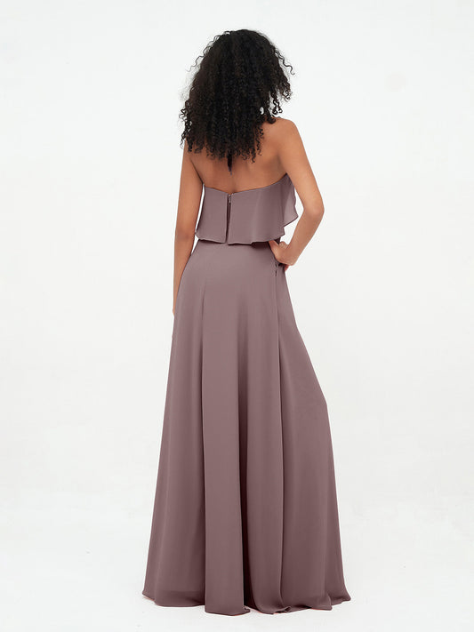 Babaroni YvonneVestidos largos de chiffon sin tirantes y escote corazón Malva Vintage