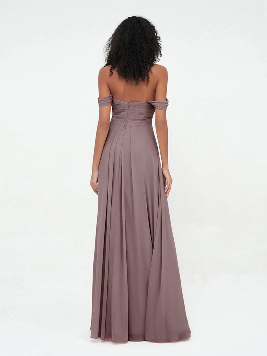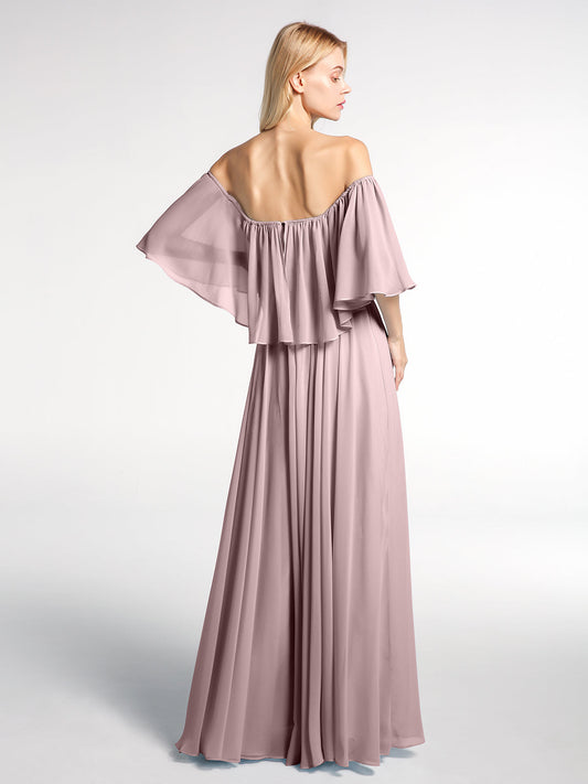 Babaroni VirginiaVestidos máximos de chiffon con falda escalonada estilo off shoulder Malva Vintage