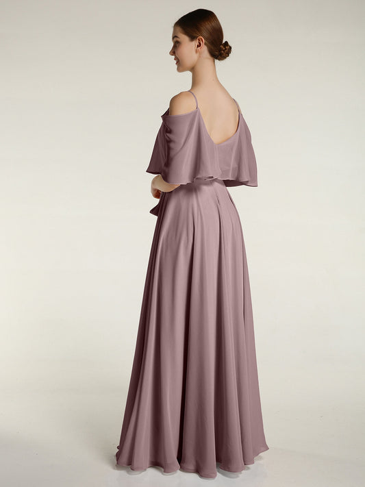 Babaroni CoraVestido largo de dama de honor de chiffon con tirantes dobles Malva Vintage