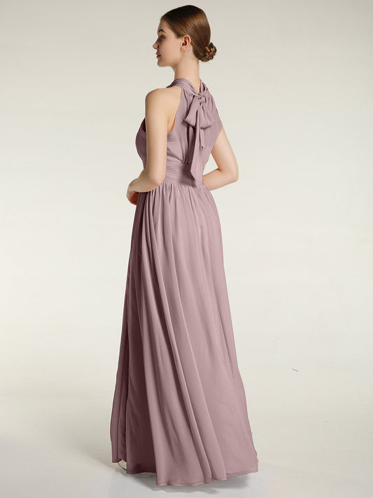 Babaroni ReneeVestido sexy maxi de chiffon con cuello halter y espalda baja Malva Vintage