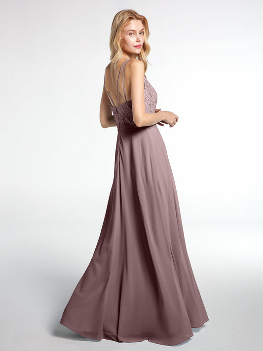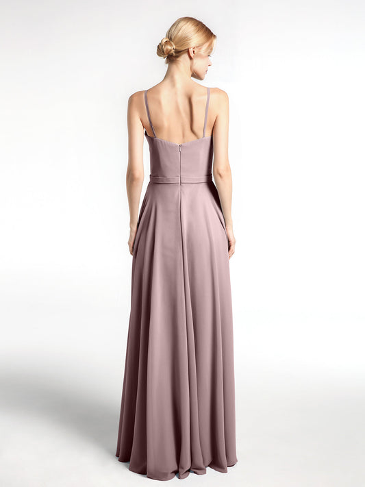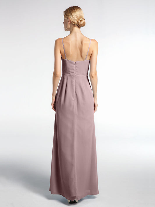 Babaroni NatalieVestido maxi simple de chiffon con escote en V y tirantes finos Malva Vintage
