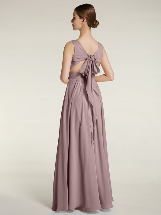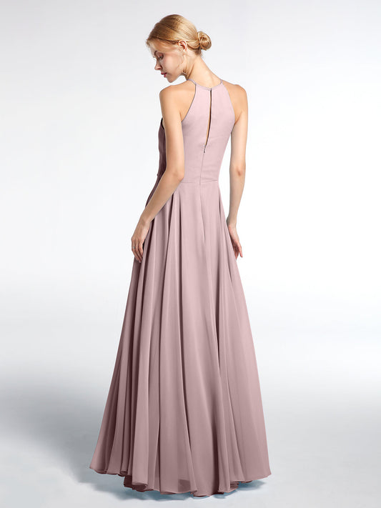 Babaroni JaneVestidos largos de chiffon estilo halter con lazo Malva Vintage