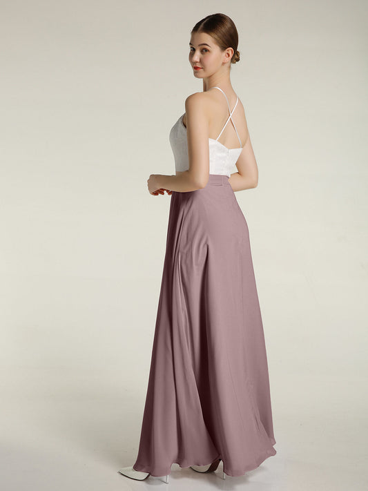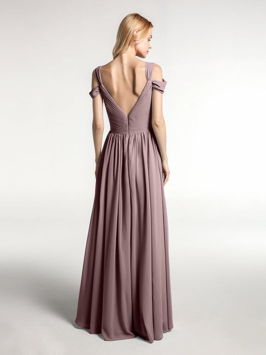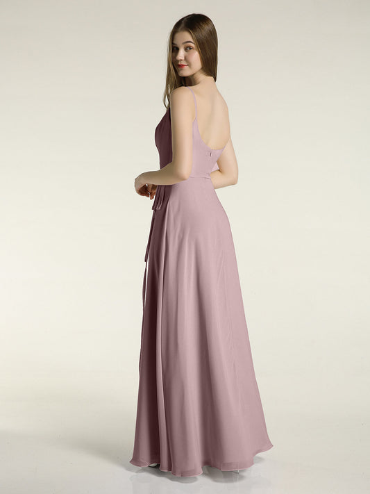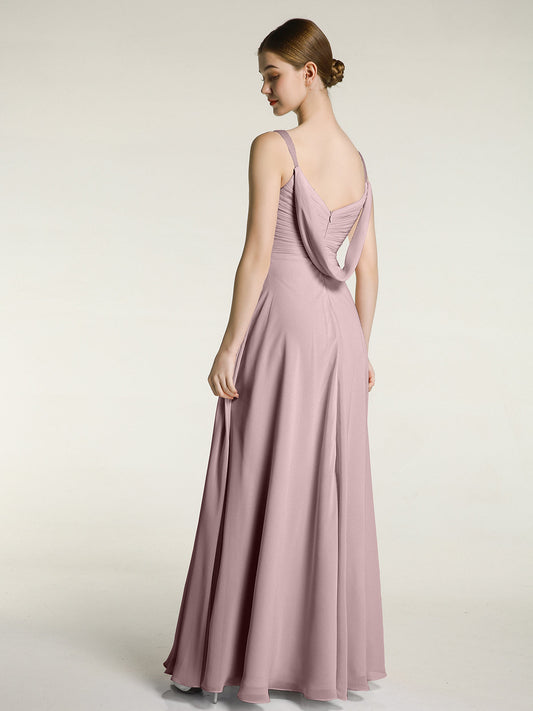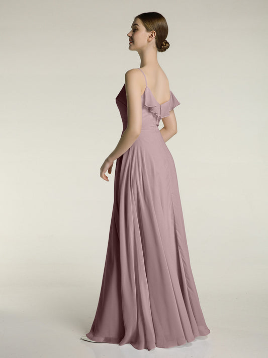 Babaroni JuliaVestidos largos de chiffon con tirantes finos y escote en V Malva Vintage