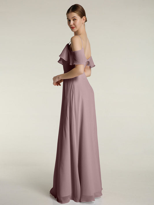 Babaroni MaudSencillos vestidos largos de chiffon con tirantes finos y abertura Malva Vintage