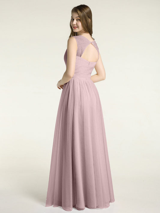 Babaroni VeraVestidos largos de tul cruzado plisado con tirantes decorados con cuentas Malva Vintage