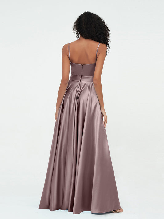 Babaroni MyrnaVestidos máximos de satén estilo A-line con tirantes spaghetti Malva Vintage