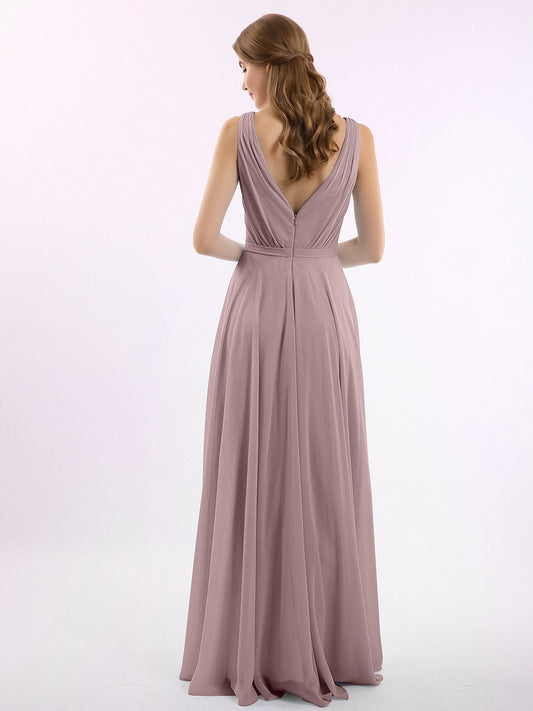 Babaroni NicoleVestidos largos de dama de honor de chiffon sin tirantes Malva Vintage