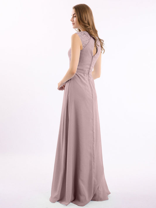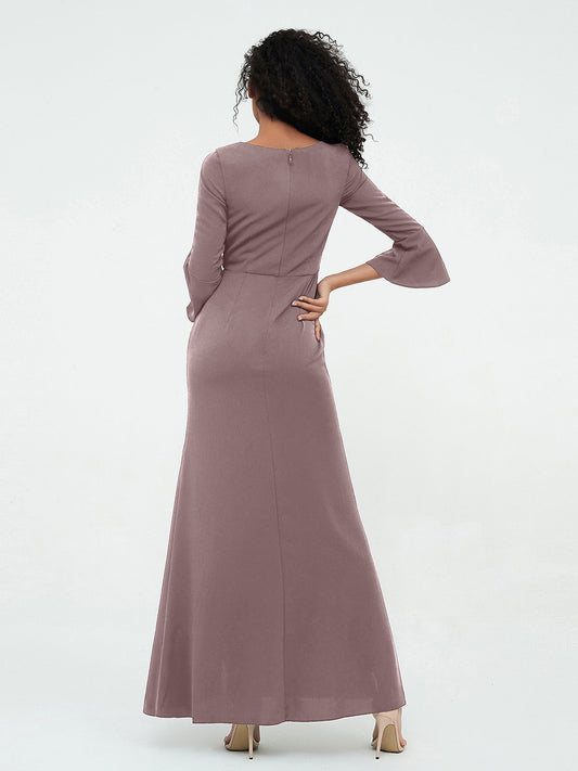 Babaroni LaurenVestidos largos de chiffon estilo princesa con abertura Malva Vintage