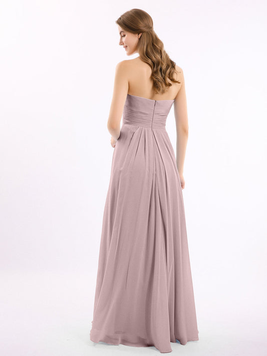 Babaroni AuroraVestidos de chiffon sin tirantes con escote en corazón Malva Vintage