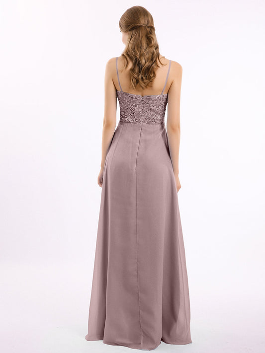 Babaroni CherryVestidos largos de encaje y chiffon con tirantes finos Malva Vintage