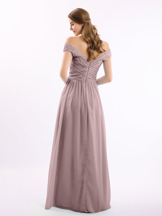 Babaroni JoannaVestidos largos de encaje con mangas largas y hombros descubiertos Malva Vintage